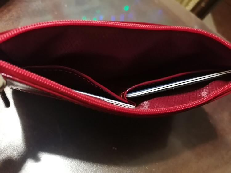 Портмоне классное, мягкая кожа, яркий насыщенный вишнёвый цвет, фурнитура качественная, отпечатки пальцев не остаются, хотя он лаковый. Настроение поднимает. Небольшой, компактный женский кошелек, кредитки входят в одно из внутренних отделений, во-второе не помещаются, я наловчилась таки вместить, но тогда начинает выгибаться кошелек, внутренний чехол по размеру, но вероятно из-за внешних швов не хватает, моему не хватило буквально 4мм, но может быть это только у моего кошелька, чуть шире захватили внешний шов и все, имейте это ввиду. Я брала по интернету, в магазине не проверила, обнаружила уже дома, если для вас это важно, проверяйте в магазине. Денежные купюры входят полностью. Есть 2 боковых кармашка и одно центральное отделение, с отделениями для карт. Кожа хорошего качества, мягкая и тонкая, не шуршит и очень приятная на ощупь, если бы не форс-мажор с картами вообще было супер. Общее впечатление положительное.