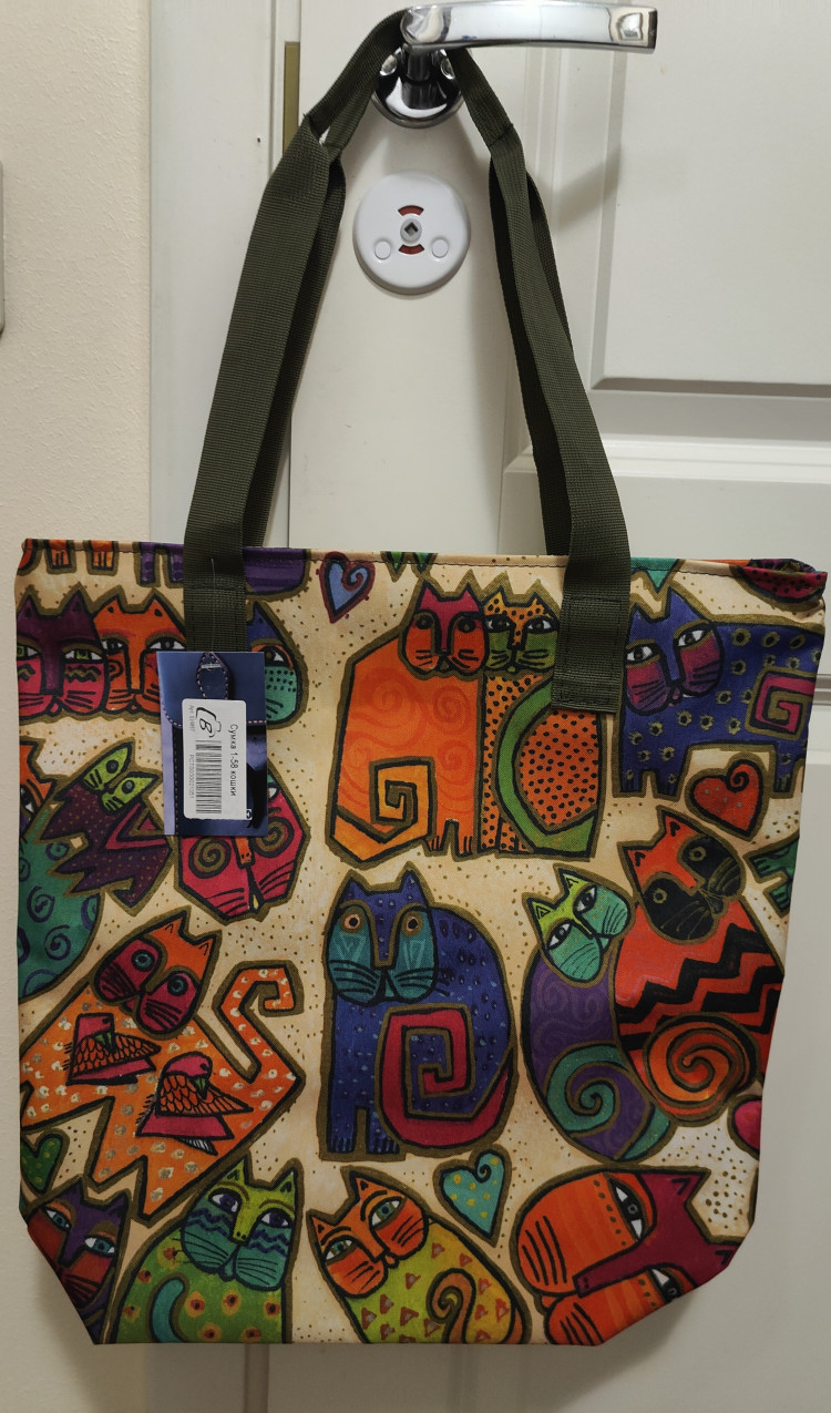 Шопер с кошками очень удобный, яркий, кошки забавные, ткань непромокаемая
